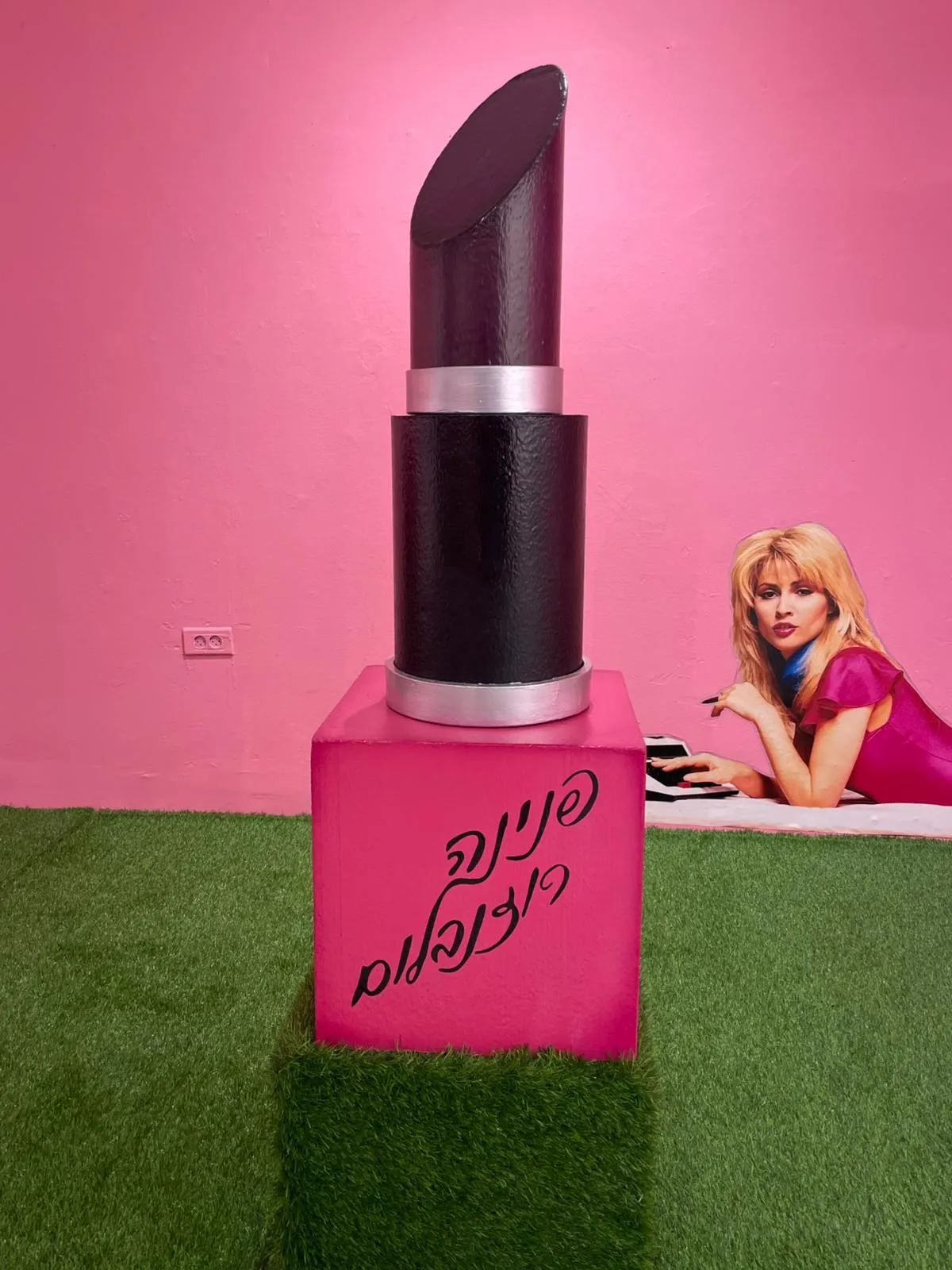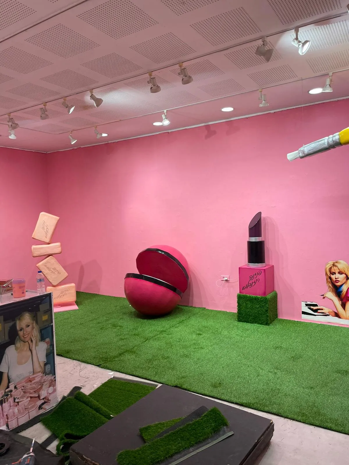 עיצוב ובניית תפאורה צבעונית בהשראת עולם האיפור והזוהר לתערוכה של פנינה רוזנבלום.
