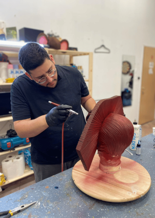 אני עובד בטכניקה שנקראת גריעה (פיסול בגושי ספוג) בשיטה הזו אני יכול לייצר כל צורה של ראש לבובה באופן מדוייק